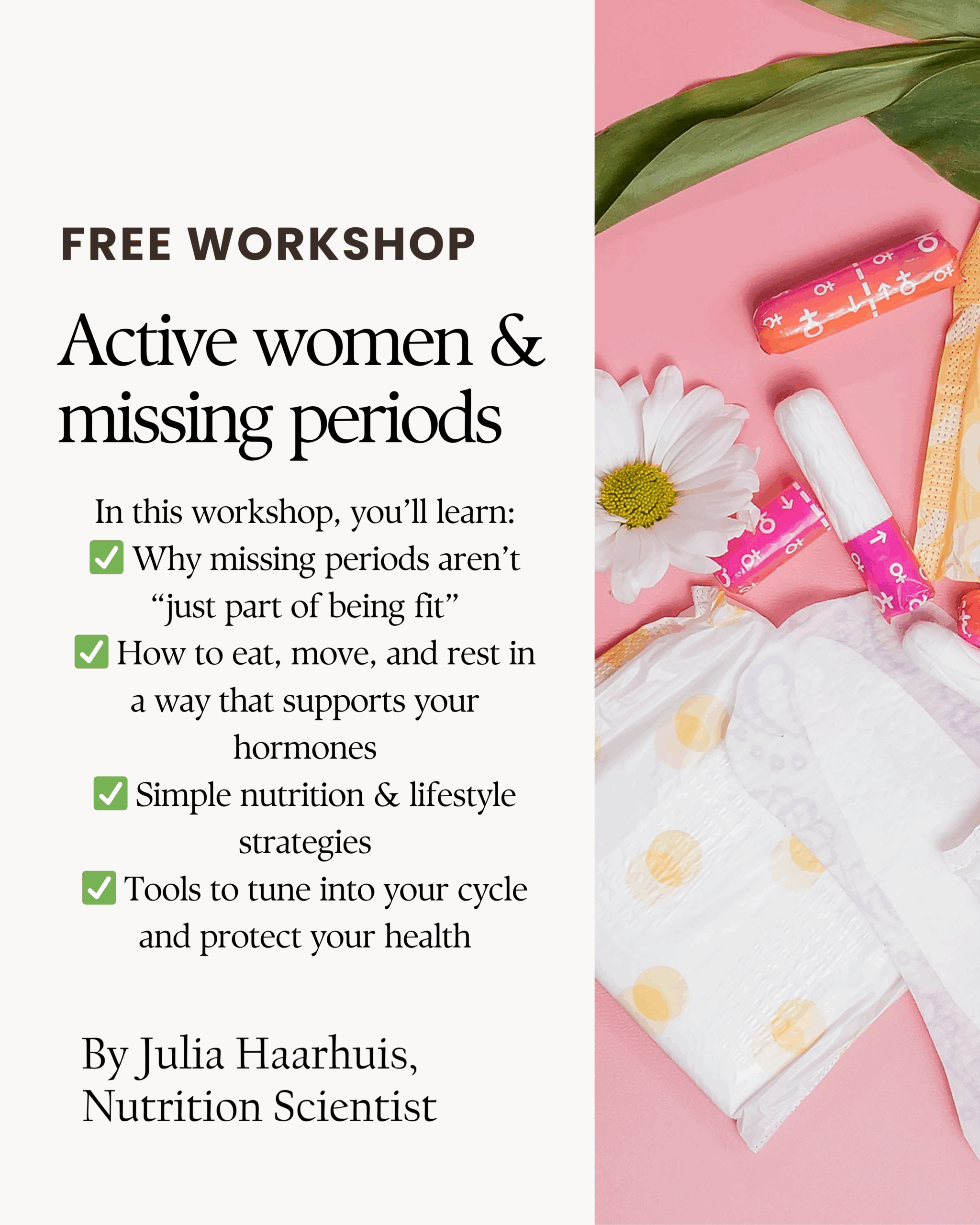 On Wednesday 10 December, nutritionist Julia Haarhuis will host a free workshop about hypothalamic amenorrhea (HA).
