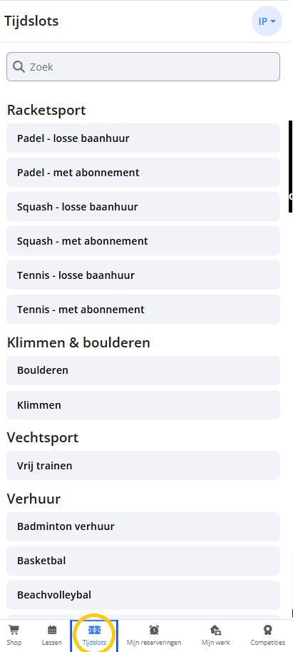 Ook moet je bij ‘Tijdslots’ zijn om een zaal te huren, bijv. als je met vrienden wil basketballen, of zelf een studio wil huren om te dansen.